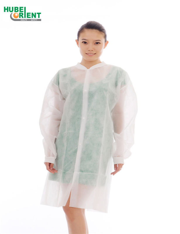 Απορρίψιμο μη υφασμένο ερευνητικό παλτό με πλεκτό κολάρο που χρησιμοποιείται στο εργοστάσιο καθαρού δωματίου