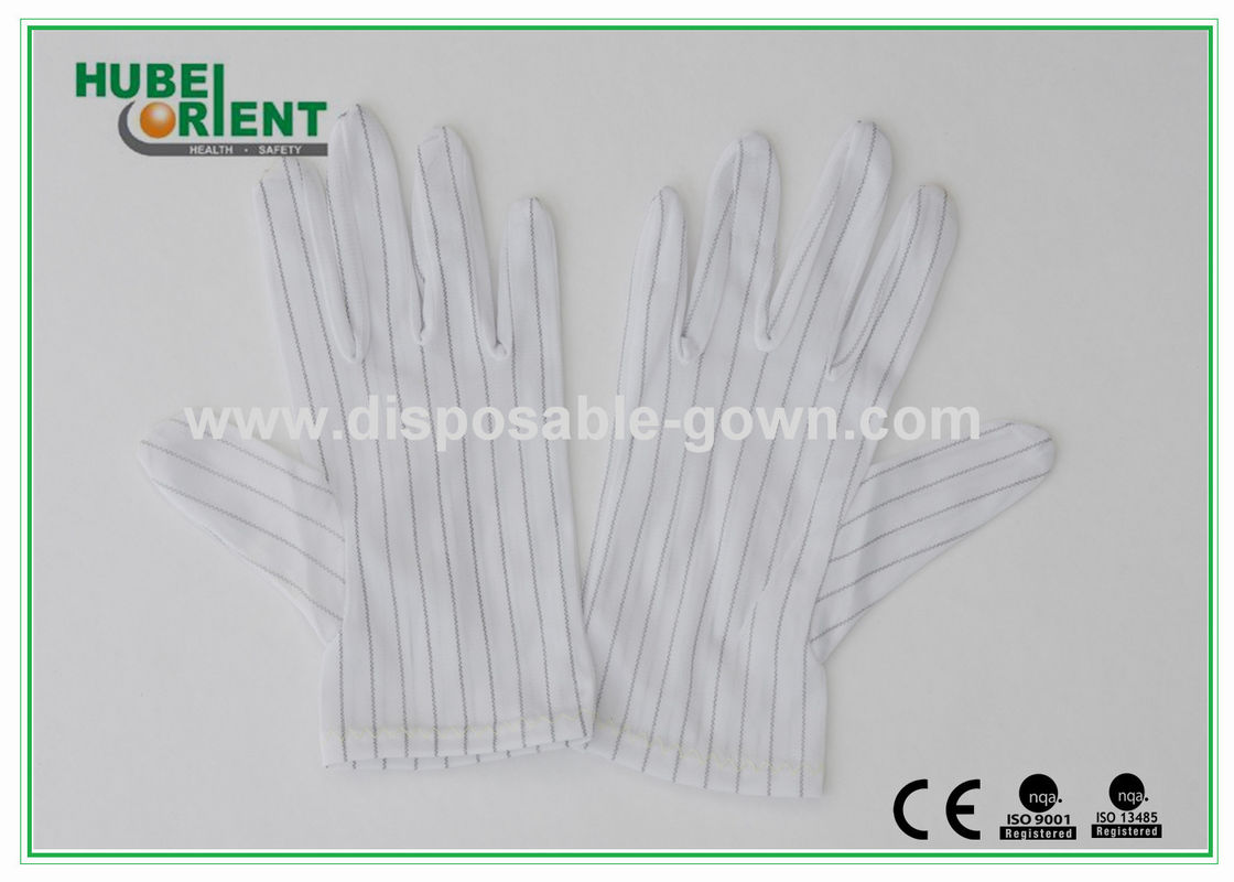 Λευκά γάντια Νάιλον ESD με αγωγική κορδέλα για εργοστάσιο ηλεκτρονικών